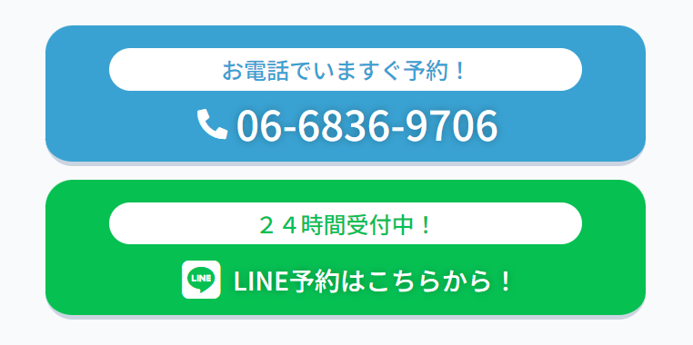 キャンペーン告知のすぐ下にCTA(コールトゥーアクション)バナーを設置しています。スマホ閲覧時は電話番号をタップで直接電話することもできます。また最近は多くの治療院が活用しているLINEを用いた予約システムの案内も行っています。
