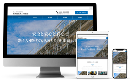 建設業の格安ホームページ制作では、弊社オリジナルの建設業ホームページ専用テンプレートを活用して制作を行います。テンプレートを使うと同じようなデザインになりがちですが、掲載する写真やカラーリング、構成の工夫によって、それぞれの企業に合ったオリジナルに近い仕上がりが可能です。下記では、このテンプレートをもとに実際に制作した建設業ホームページの実績をご紹介いたします。