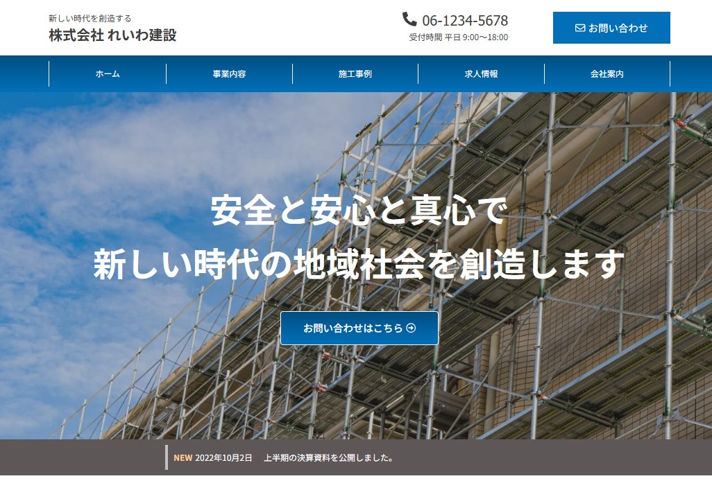 建設業ホームページの制作実績