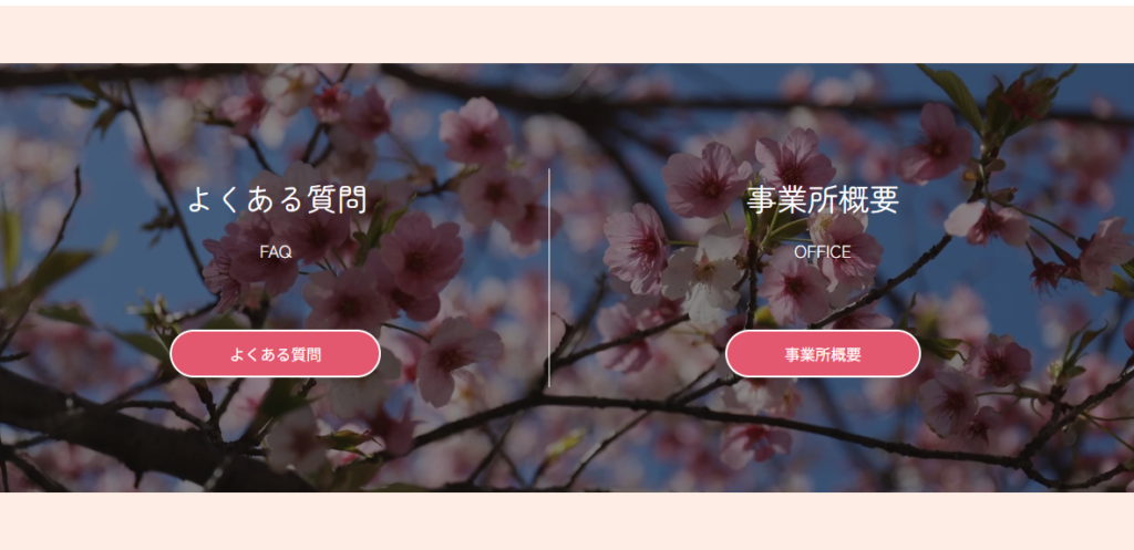 「よくある質問」と「事業所概要」のところだけは背景とボタンでリンクするような設計になっています。